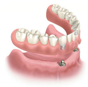 Når protesen skal sidde fast i munden, kan det være nødvendigt at få implantater i munden (i kæbeknoglen) og tryklåse i protesen. Implantater er såkaldte kunstige rødder, som bliver indsat i kæbeknoglen. Derefter låses protesen fast på disse implantater. Protesen vil nu ikke bevæge sig under tygning eller talen.